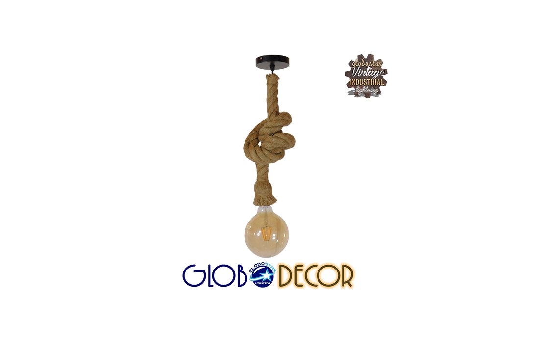 GloboStar® Rope 01278 Vintage Industrial Κρεμαστό Φωτιστικό Οροφής Μονόφωτο με 1 Μέτρο Μπεζ Σχοινί Φ3.5 x 100 cm - 5875