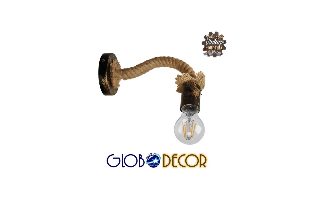 GloboStar® Sadon 01126 Vintage Φωτιστικό Τοίχου Απλίκα Μονόφωτο Μπρούτζινο Σκουριά Μεταλλικό με Μπεζ Σχοινί Μ22 x Π10 x Υ15 cm - 5912