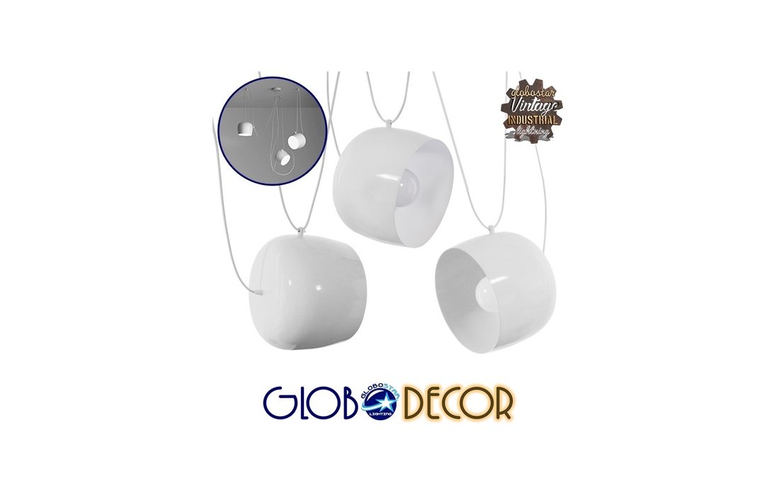 GloboStar® Jasper 01376 Set 3 Μοντέρνα Κρεμαστά Φωτιστικά Οροφής Τρίφωτα 3 x E27 Λευκά Μεταλλικά Καμπάνα Φ25 x Υ22 cm - 7114