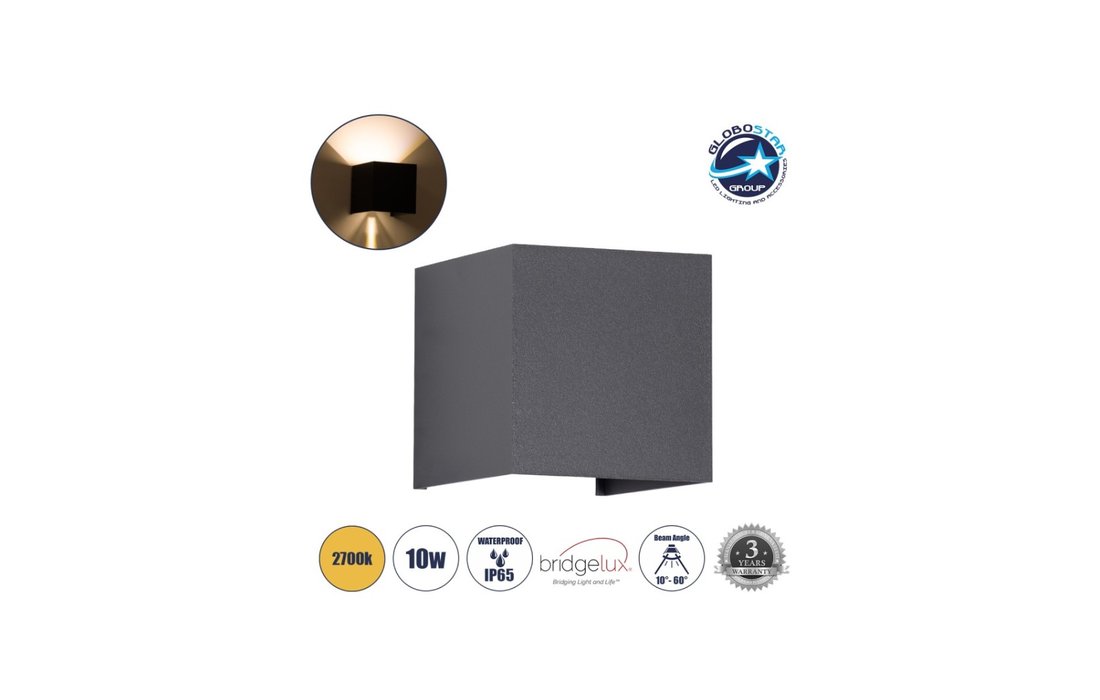 GloboStar® Axis-S 60561 Φωτιστικό Τοίχου Up & Down LED 10 W 1150 lm AC 220-240 V Αδιάβροχο Θερμό Λευκό 2700 K - Γκρι Ανθρακί - Bridgelux Chip - 7162