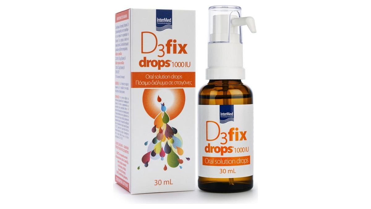 Intermed D3 Fix Drops 1000IU Συμπλήρωμα Βιταμίνης D3 σε σταγόνες με γεύση Βανίλια 30 ml