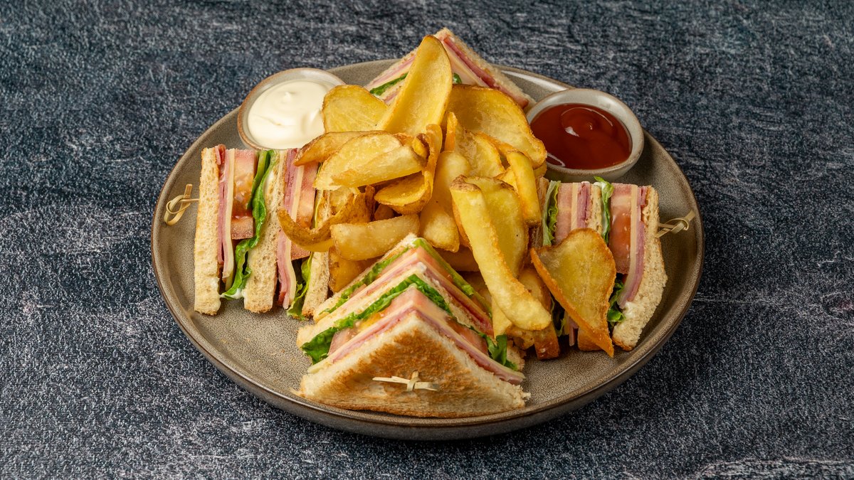 Με πιπεριά φλωρίνης, καπνιστή γραβιέρα, σως γιαουρτιού, μπιφτέκι, ντομάτα, μαρούλι. Συνοδεύεται από πατάτες τηγανητές