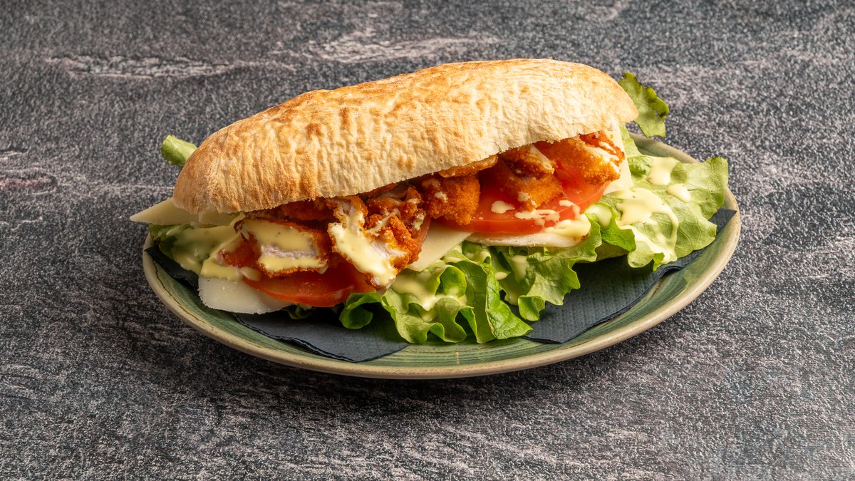 Με παναρισμένο κοτόπουλο, flakes παρμεζάνας και σως μαγιονέζας