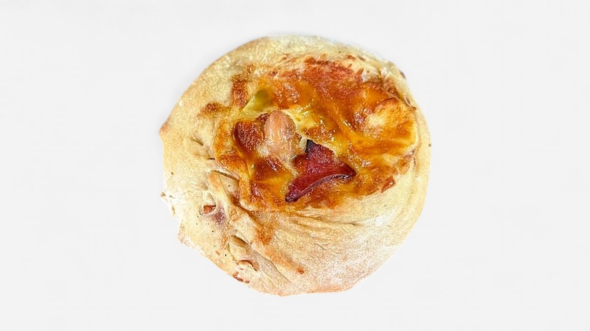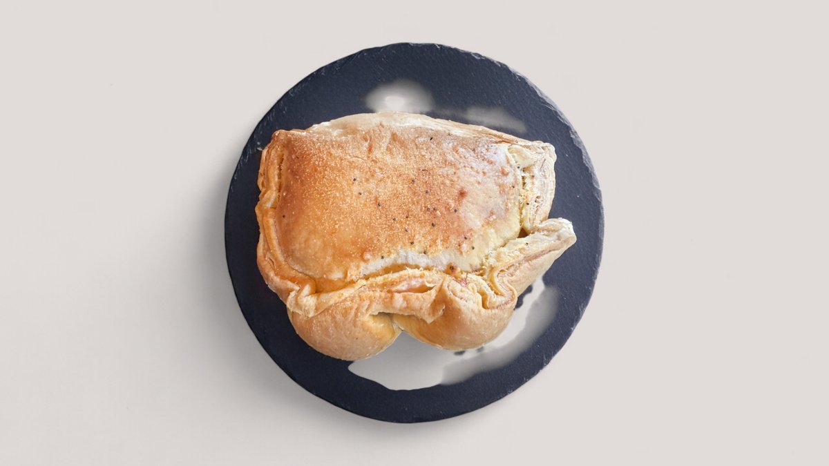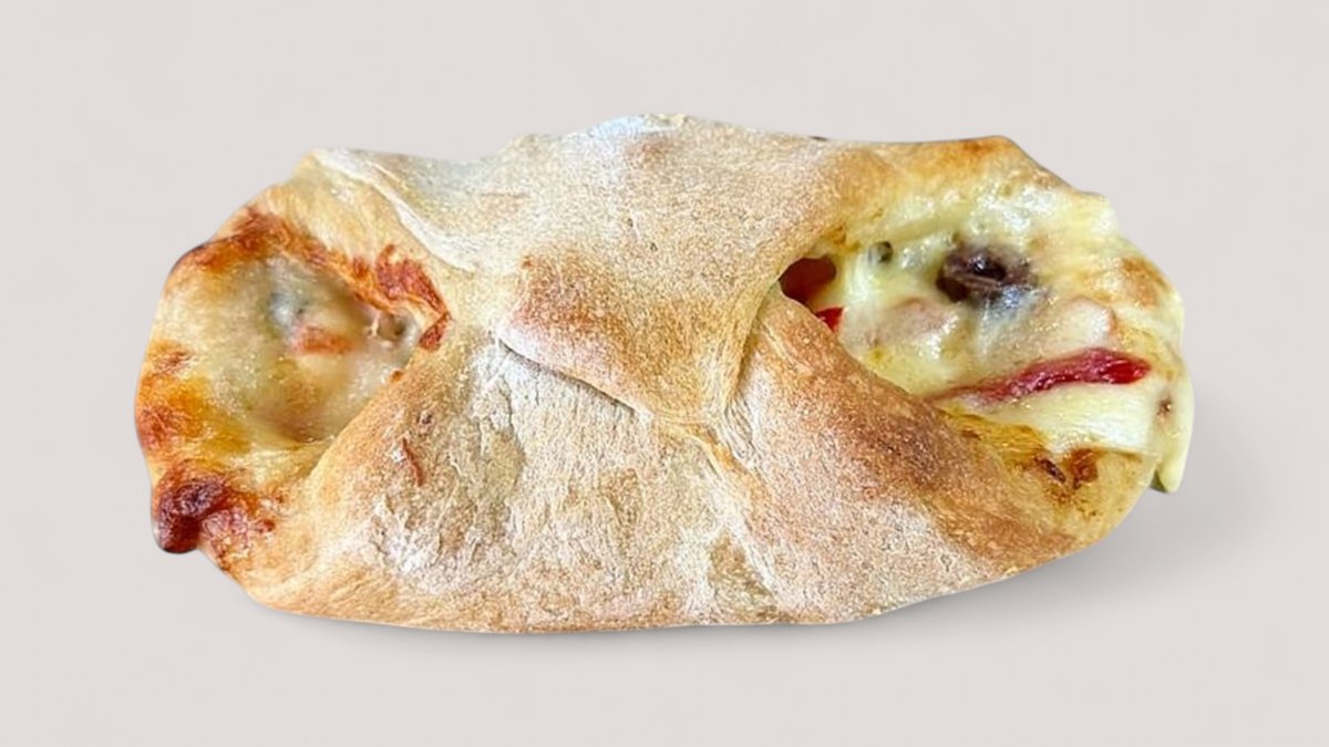 Χειροποίητο μεσογειακό σάντουιτς με αφράτη ζύμη πίτσας, γεμισμένο με φρέσκα υλικά μεσογειακής κουζίνας. Handmade Mediterranean sandwich made with soft pizza dough and fresh Mediterranean ingredients.