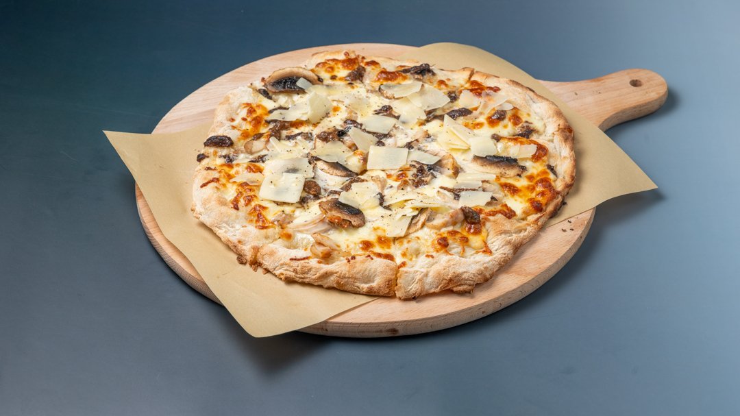 30 cm. Με τυρί κρέμα, φρέσκο κοτόπουλο, μανιτάρια και λάδι τρούφας
