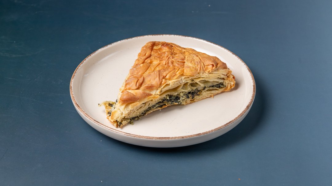 Χειροποίητη, αφράτη πίτα γεμιστή με φρέσκο σπανάκι και φέτα.