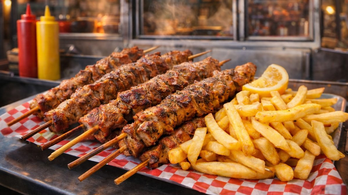 Καλοψημένο σουβλάκι με ντομάτα, πατάτα, κρεμμύδι και δροσερό τζατζίκι σε απόλυτη ισορροπία.