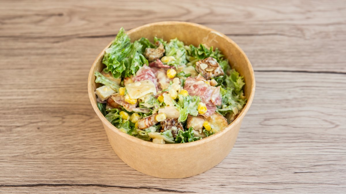 Σαλάτα με iceberg, φιλέτο κοτόπουλο, παρμεζάνα, καλαμπόκι, κρουτόν και Caesar`s σως