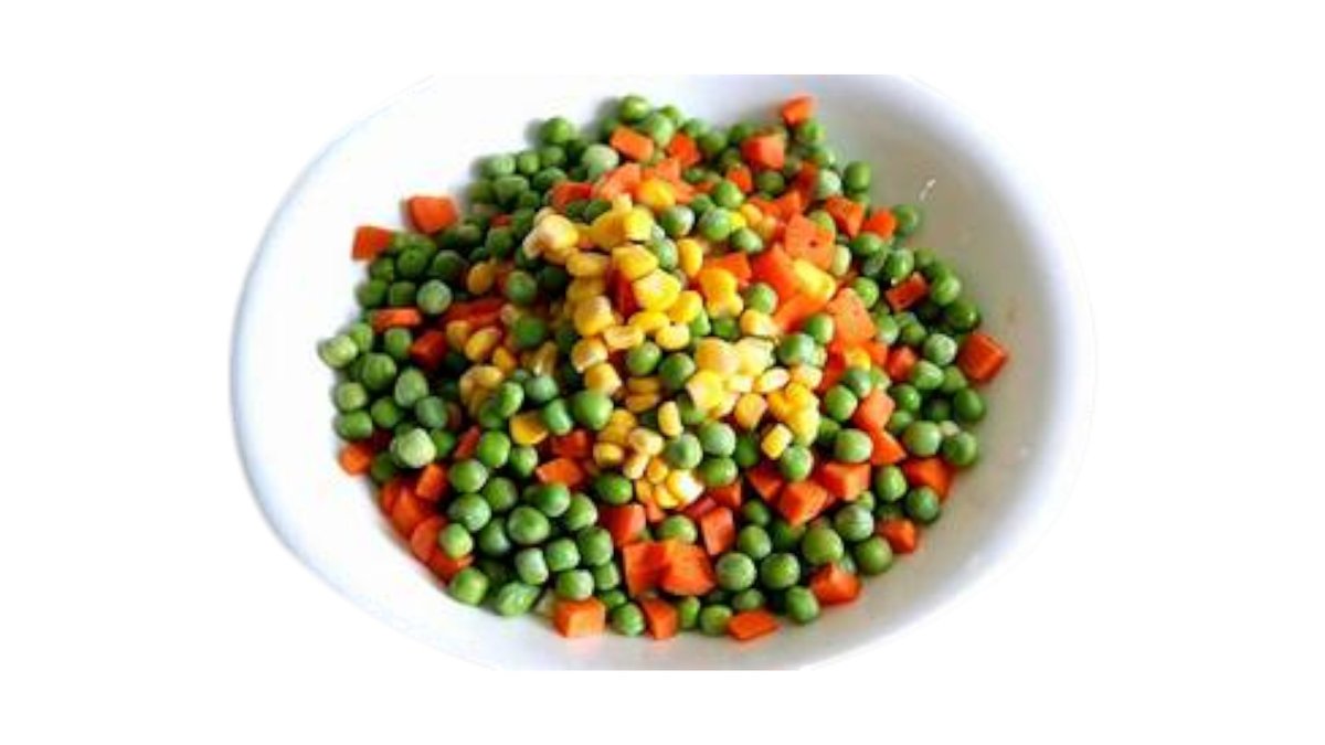 Κοτόπουλο, καρότα, φρέσκα κρεμμύδια και αρακάς. Συνοδεύεται από γαρνιτούρα επιλογής