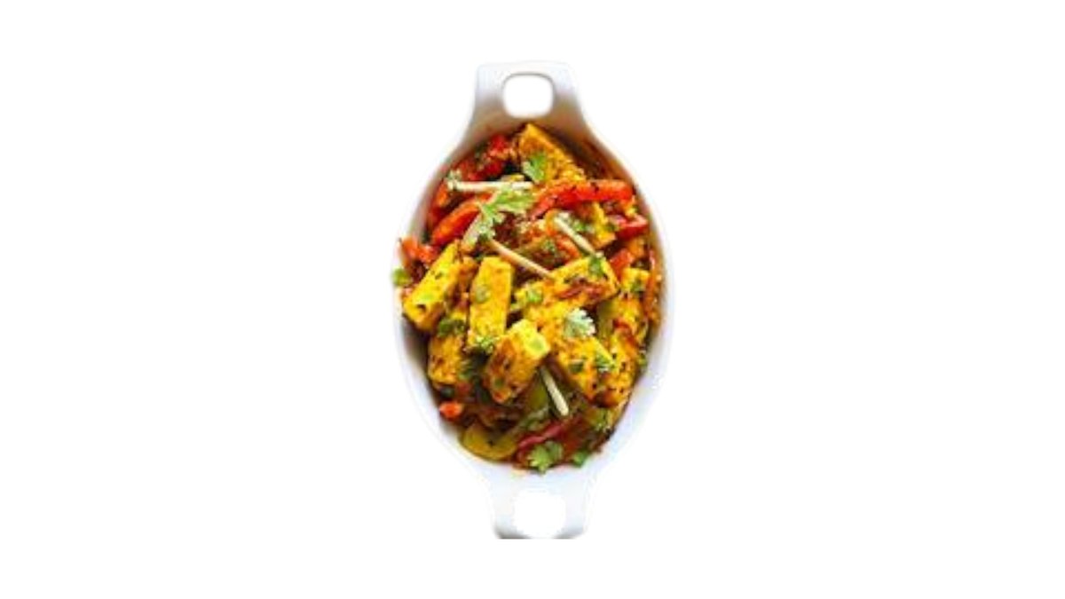 Κρεμμύδια, πιπεριές, ινδικό τυρί μαριναρισμένο σε γιαούρτι και μπαχαρικά, μαγειρεμένο σε tandoor