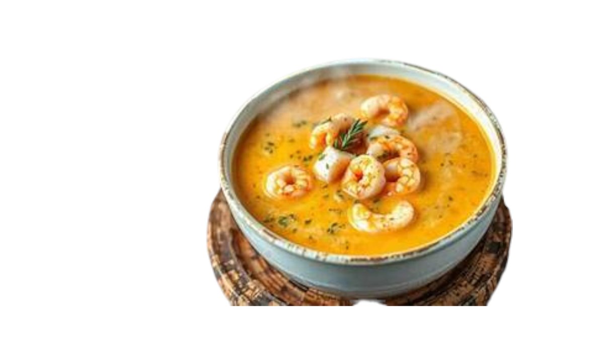 Γαρίδες, καρότα, μανιτάρια, κρεμμύδια και πατάτες. Συνοδεύεται από γαρνιτούρα επιλογής