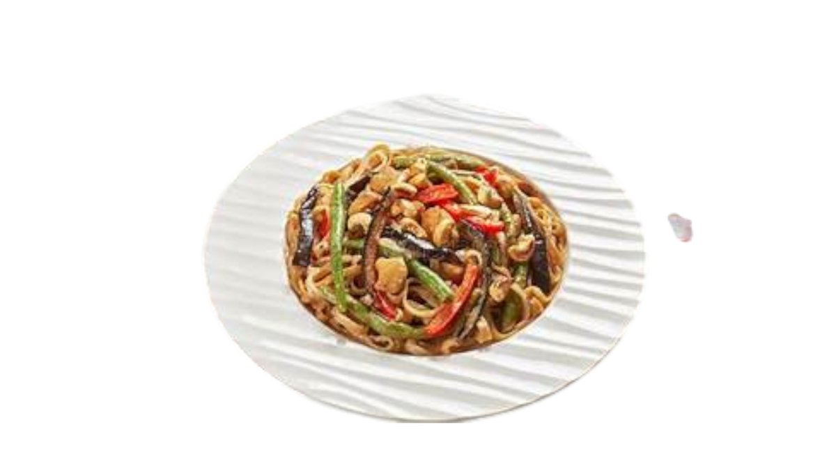 Τηγανητά noodles με λάχανο, καρότο, κρεμμύδι, φύτρες φασολιών, καλαμπόκι, πιπεριές και μαύρα μανιτάρια