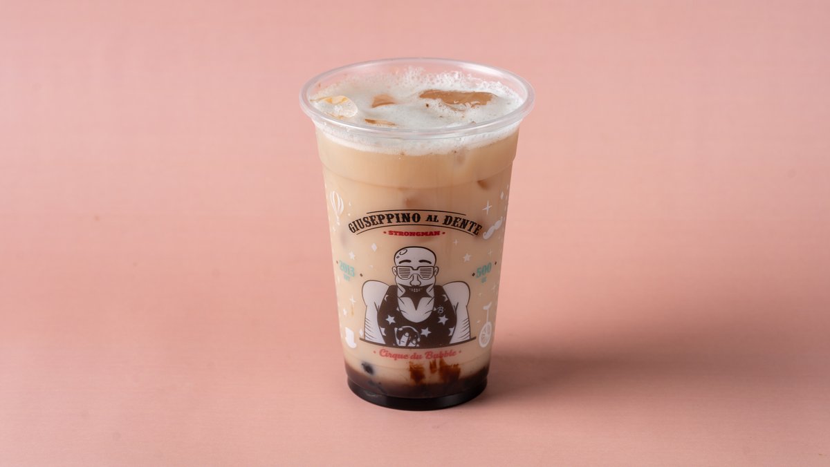 Tσάι μαύρο, γάλα εβαπορέ, σιρόπι βανίλια και bubbles καφέ
