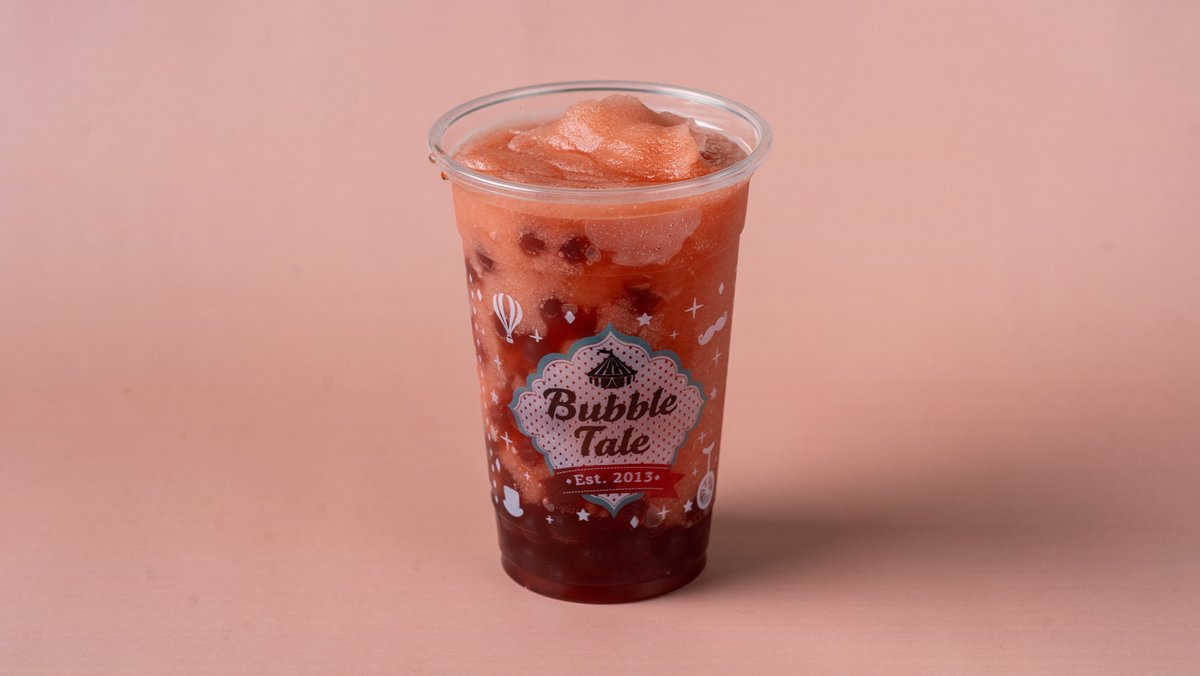 Γρανίτα με γεύση φράουλα και μπανάνα με bubbles ροδάκινο