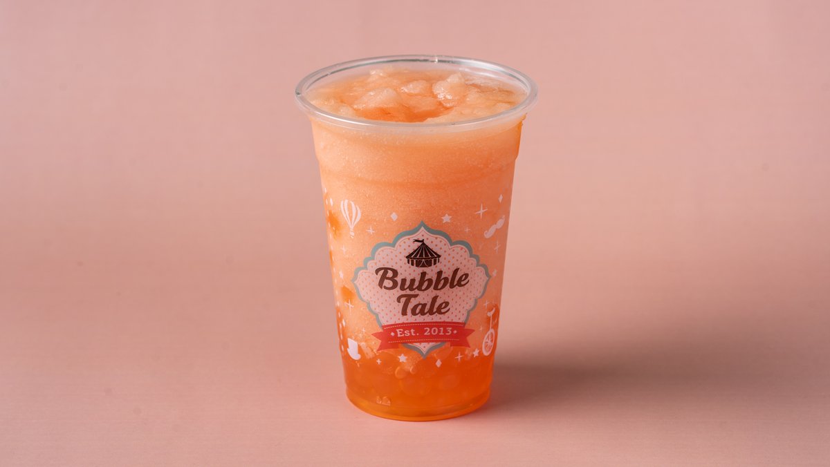 Γρανίτα με γεύση λευκό ροδάκινο, καρπούζι και ανανάς με bubbles mango