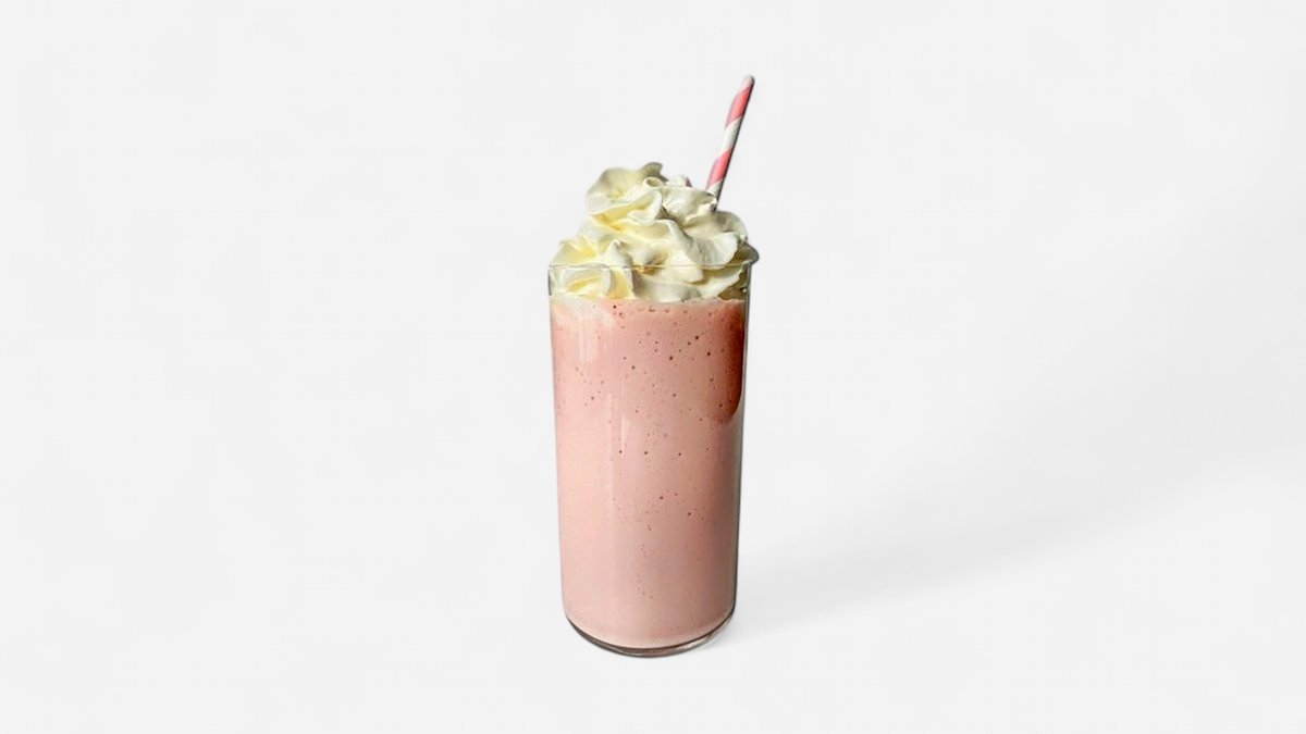 Protein shake with milk and one dose of protein powder with strawberry flavour.