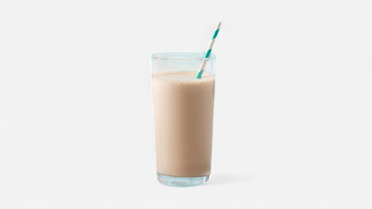 Protein shake with milk and one dose of protein powder with chocolate flavour.