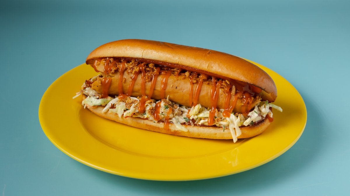 Με λουκάνικο Φρανκφούρτης, coleslaw, ketchup και crispy onion