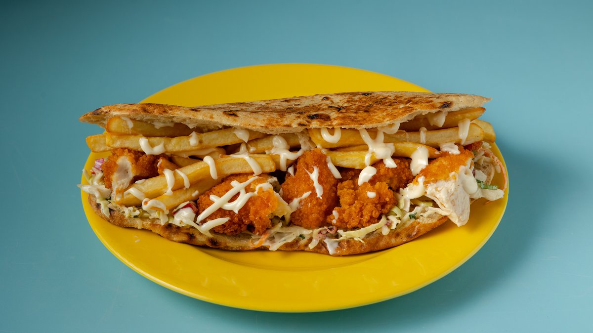 Με ψητό φιλέτο κοτόπουλο, τυρί cheddar και μαγιονέζα. Συνοδεύεται από πατάτες τηγανητές και 1 χυμό Amita fun και δώρο έκπληξη