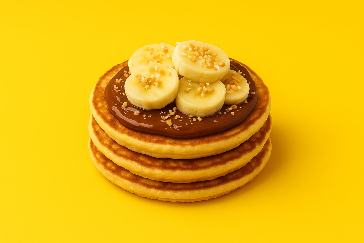 3 Pancakes. Με λαχταριστή Nutella, φρέσκες φέτες μπανάνας και κροκάν αμυγδάλου