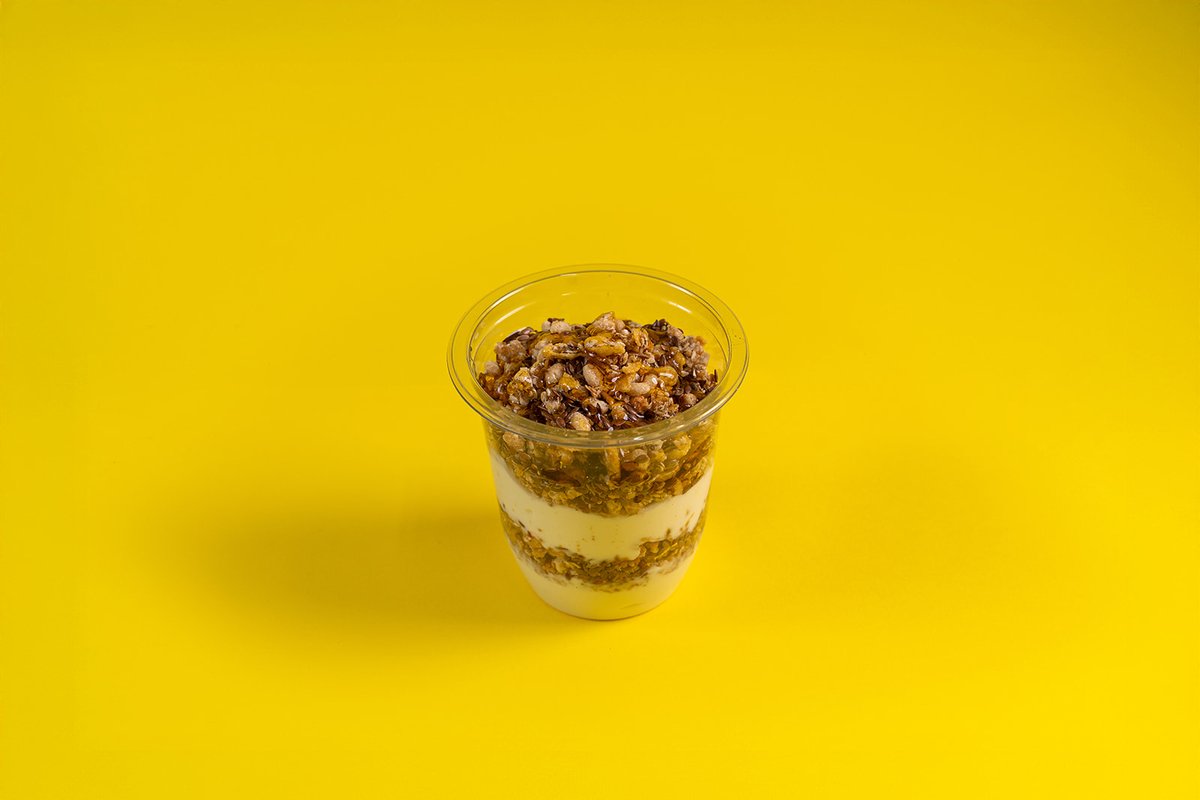 Με στραγγιστό γιαούρτι 2%, granola, μέλι, σπόροι chia, λιναρόσπορος και γύρη