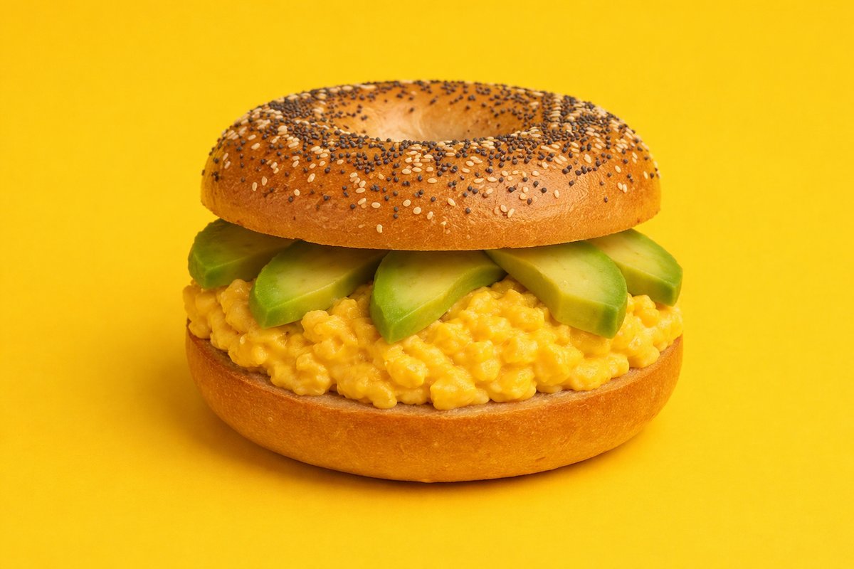 Με σκραμπλ αυγά, αβοκάντο, τυρί κρέμα και Lab mayo