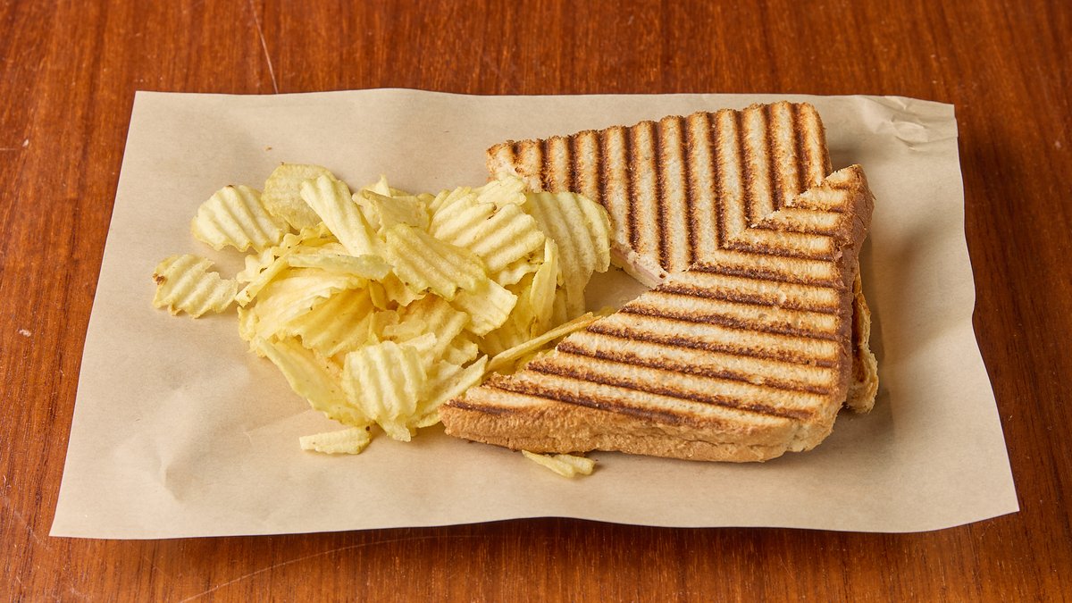 Με ζαμπόν, τυρί, ντομάτα, μαγιονέζα, πατατάκια