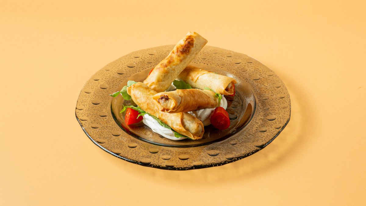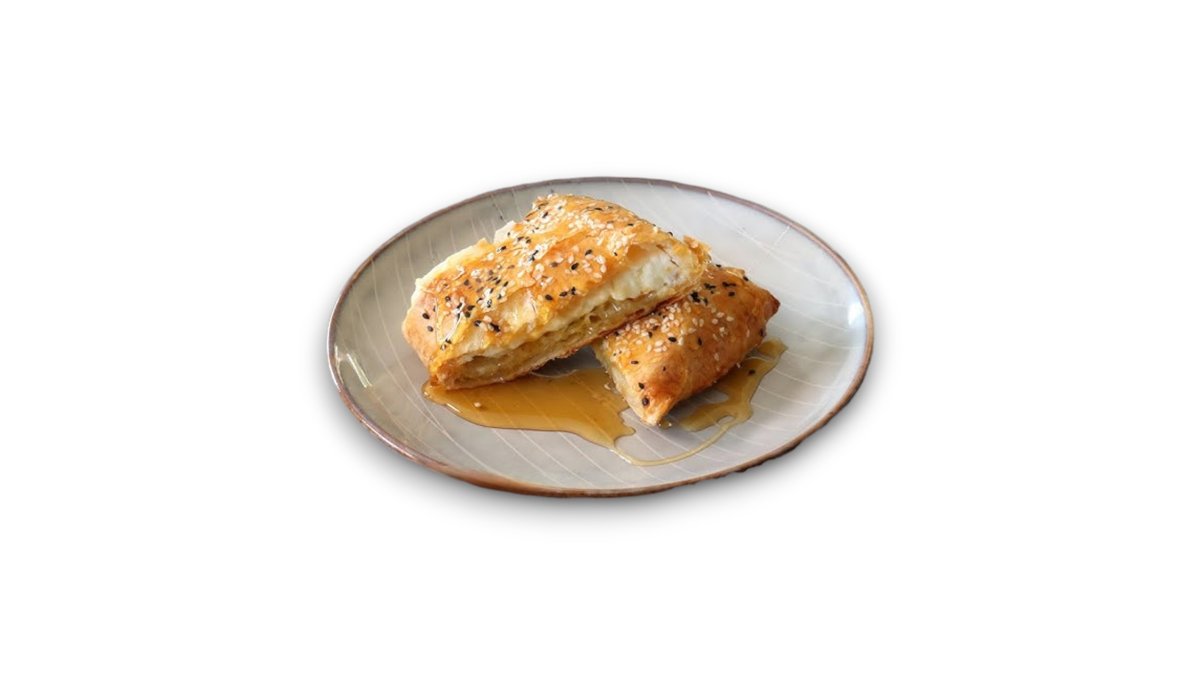 4 Τεμάχια. Σε φύλλο κρούστας, με φέτα Σερρών, κεφαλογραβιέρα και φρέσκα μυρωδικά. Συνοδεύεται από γιαούρτι λεμονάτο