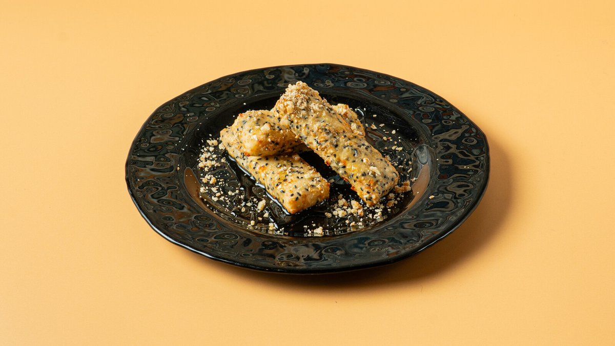 Φέτα Χαλκιδικής παναρισμένη με σουσάμι, μέλι και καρύδια