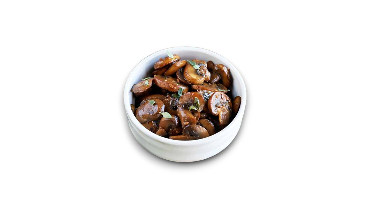Με μανιτάρια sauvignon, φρέσκο θυμάρι, γραβιέρα, λευκό κρασί και βαλσάμικο