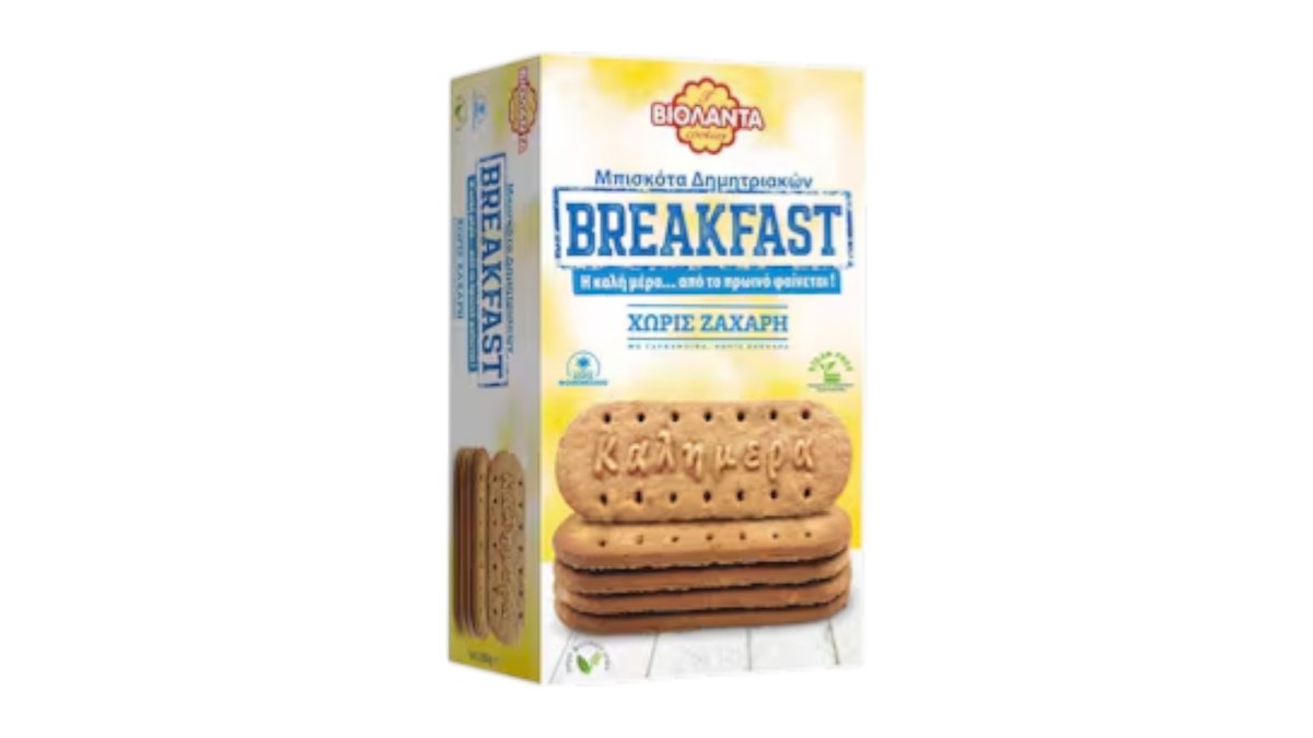 Βιολάντα Μπισκότα Breakfast Χωρίς Προσθήκη Ζάχαρης, 180 g