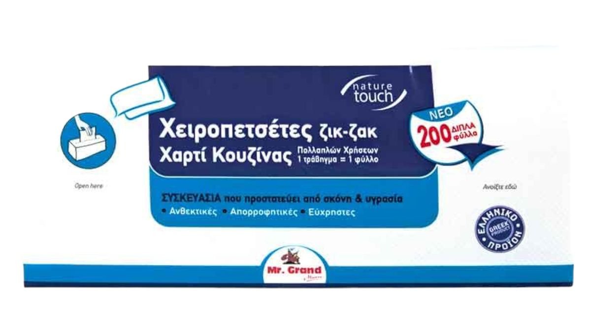 MrGrand Χειροπετσέτες Κουζίνας Ζικ Ζακ 2Φύλλων 200 Τεμάχια