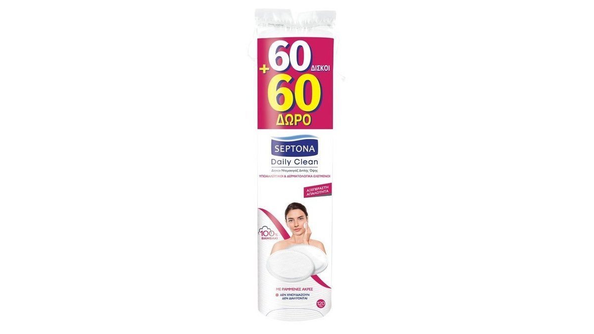 Septona Δίσκοι Στρογγυλοί Daily Clean Διπλής Όψης με Ραμμένες Άκρες 60+60 τμχ