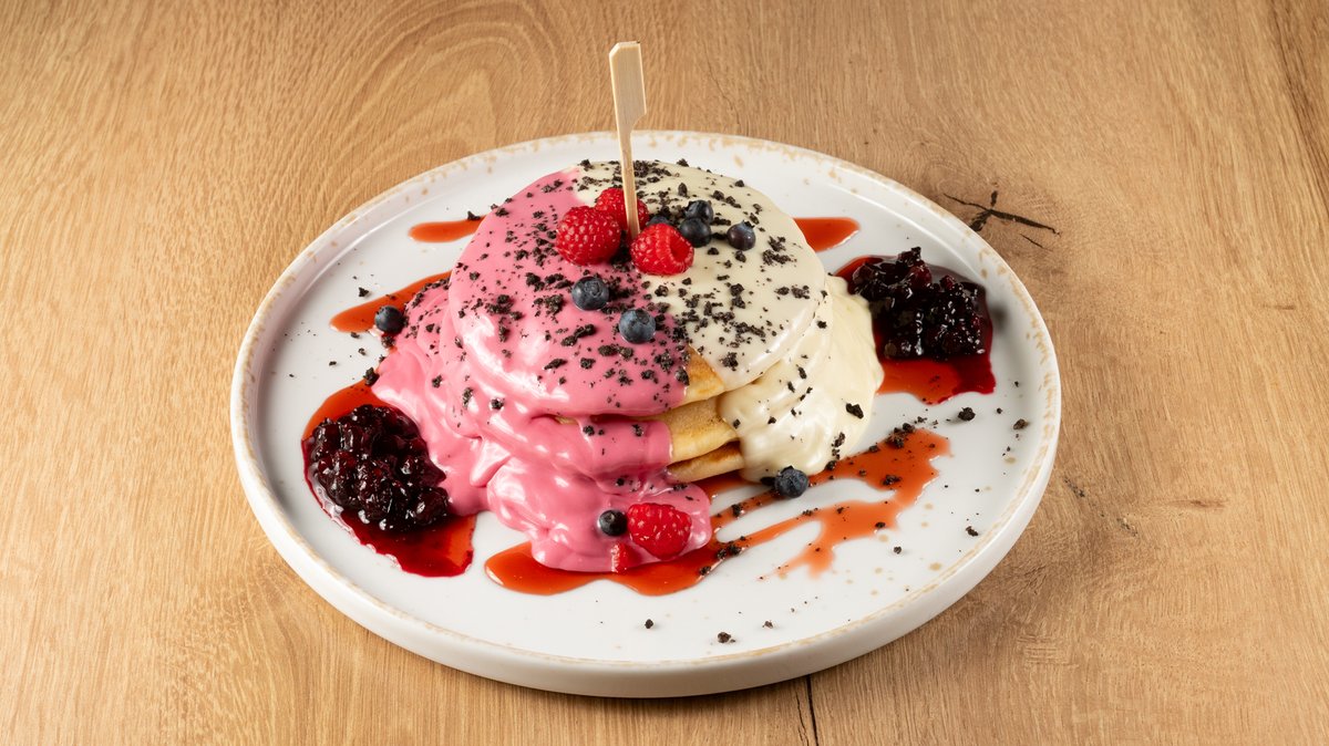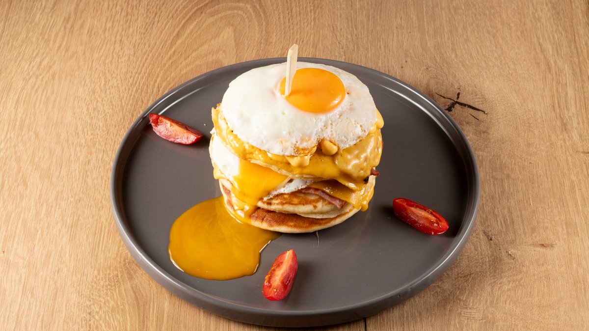 Pancake με τυρί κρέμα, γαλοπούλα και 2 τηγανιτά αυγά
