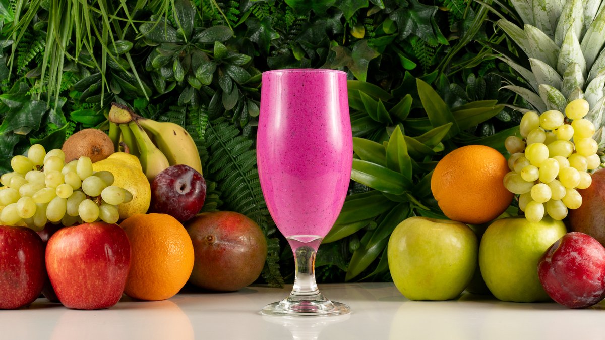 Με μούρα acai, μπανάνα, βρώμη και γάλα αμυγδάλου