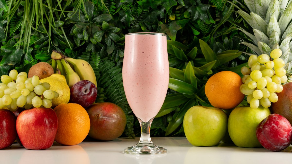 Με φράουλα, μπανάνα, γιαούρτι και γάλα αμυγδάλου
