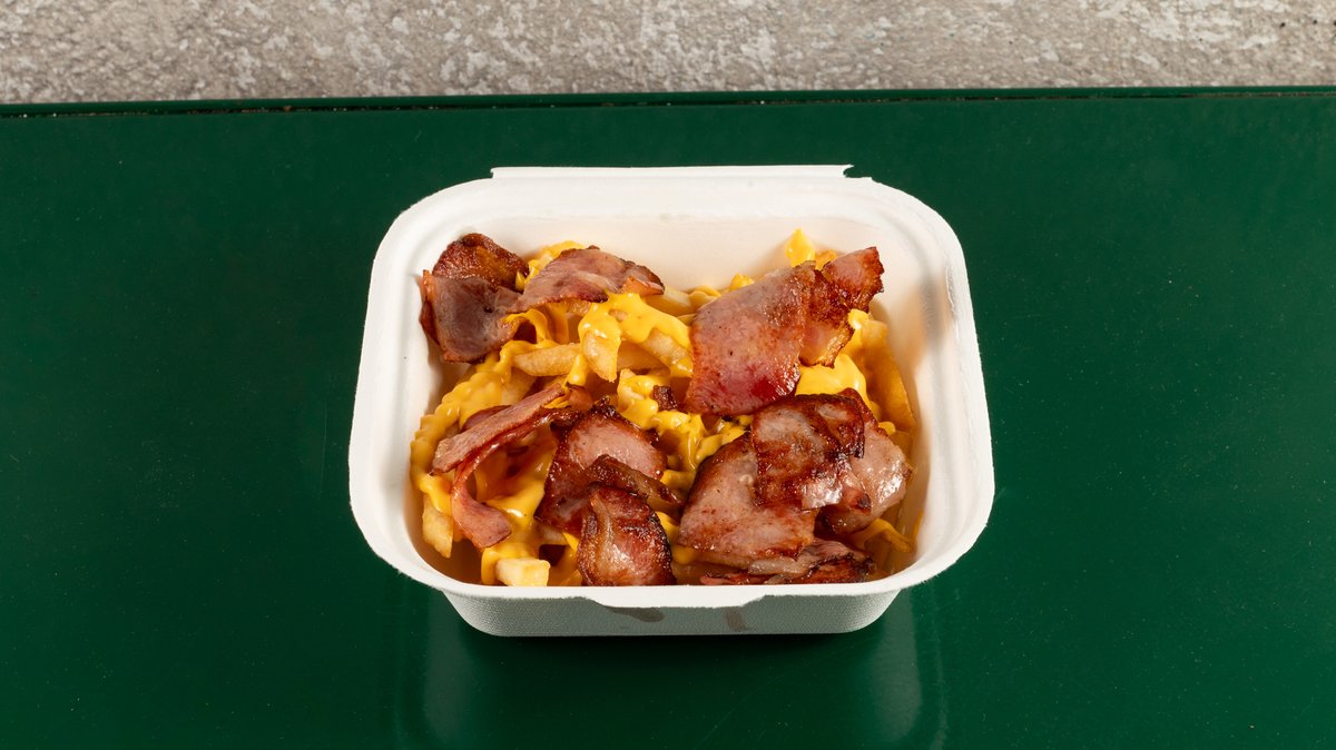 Πατάτες τηγανητές, σως τσένταρ, μπέικον