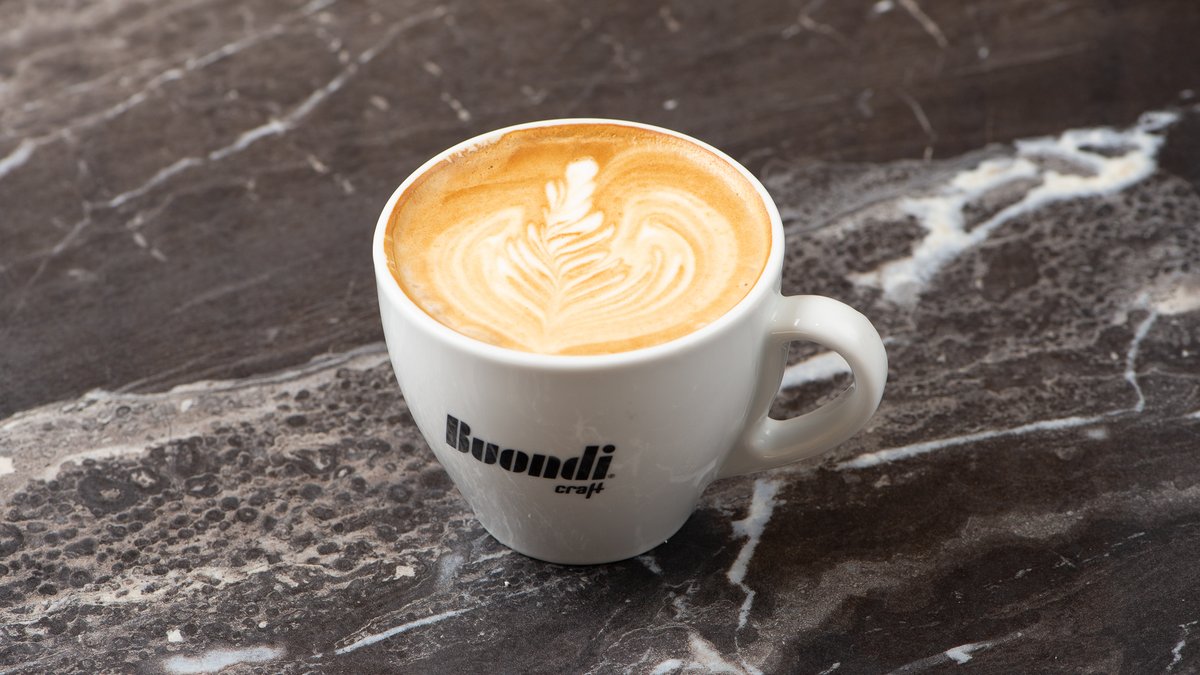 Cappuccino αρωματισμένο με σιρόπι φουντούκι και σαντιγί με λαχταριστό macaron