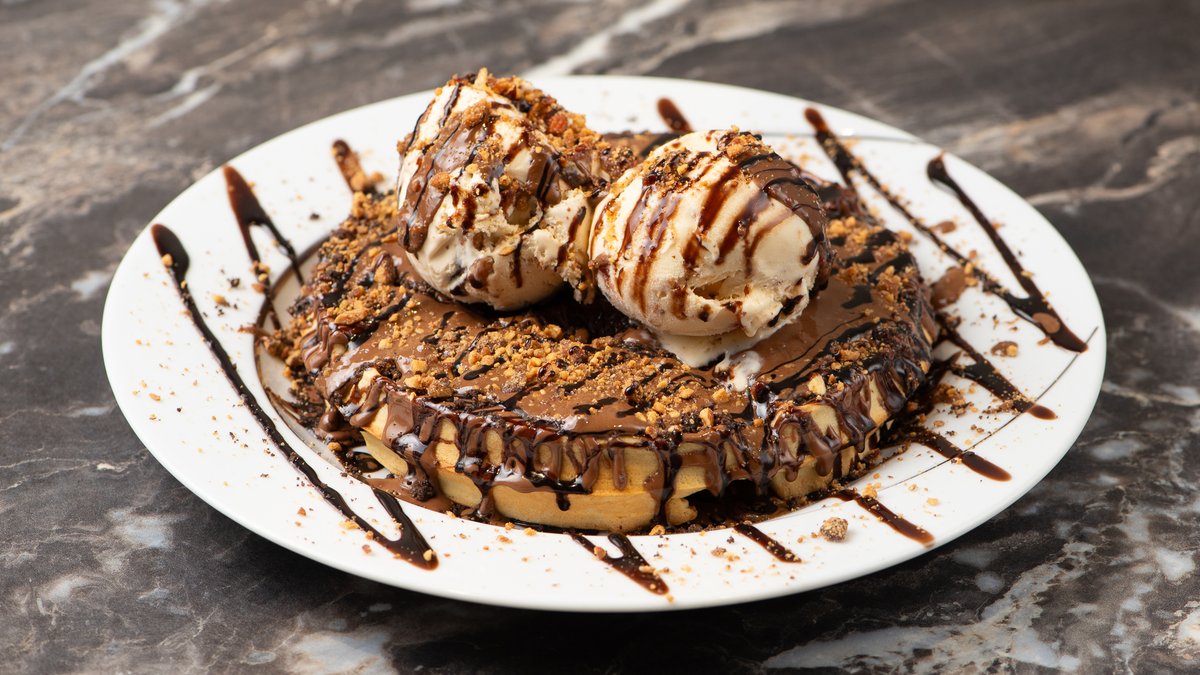 Με 1 μπάλα παγωτό cream και cookies Oreo και 1 μπάλα παγωτό cookie crunch, πραλίνα σοκολάτα με μπισκότο και τριμμένο μπισκότο Πτι Μπερ