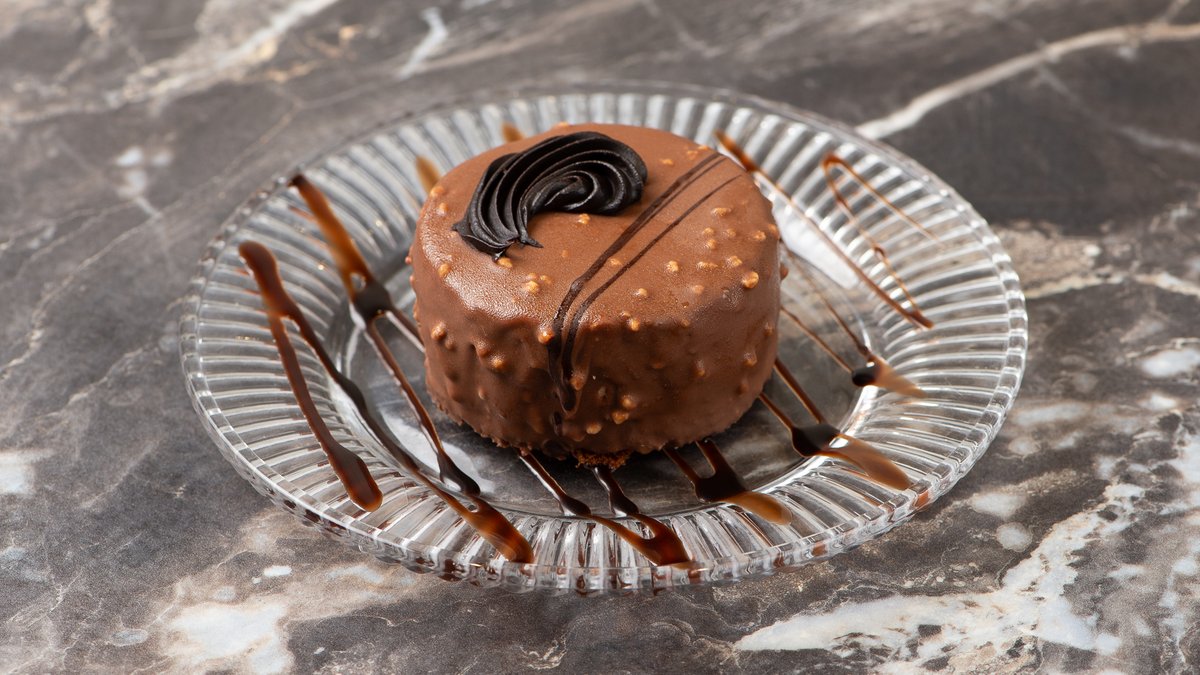 Με 1 μπάλα παγωτό parfait αμύγδαλο,1 μπάλα παγωτό parfait βανίλια, πραλίνα Ferrero Rocher, καραμελωμένα αμύγδαλα και σιρόπι σοκολάτας