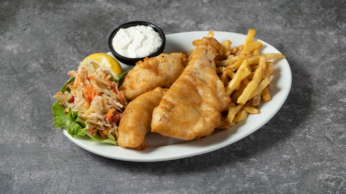 8 Τεμάχια. Συνοδεύεται από πατάτες τηγανητές, ντομάτα και κρεμμύδι