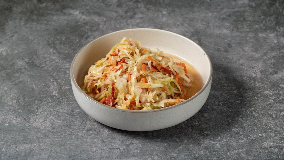 Καρότο, λάχανο, κόκκινη και πράσινη πιπεριά, σέλινο.