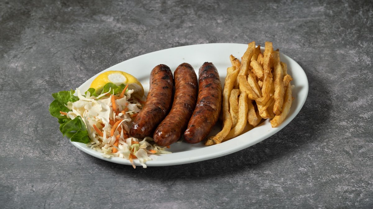 3τμχ Συνοδεύονται από τηγανητές πατάτες, κρεμμύδι και ντομάτα