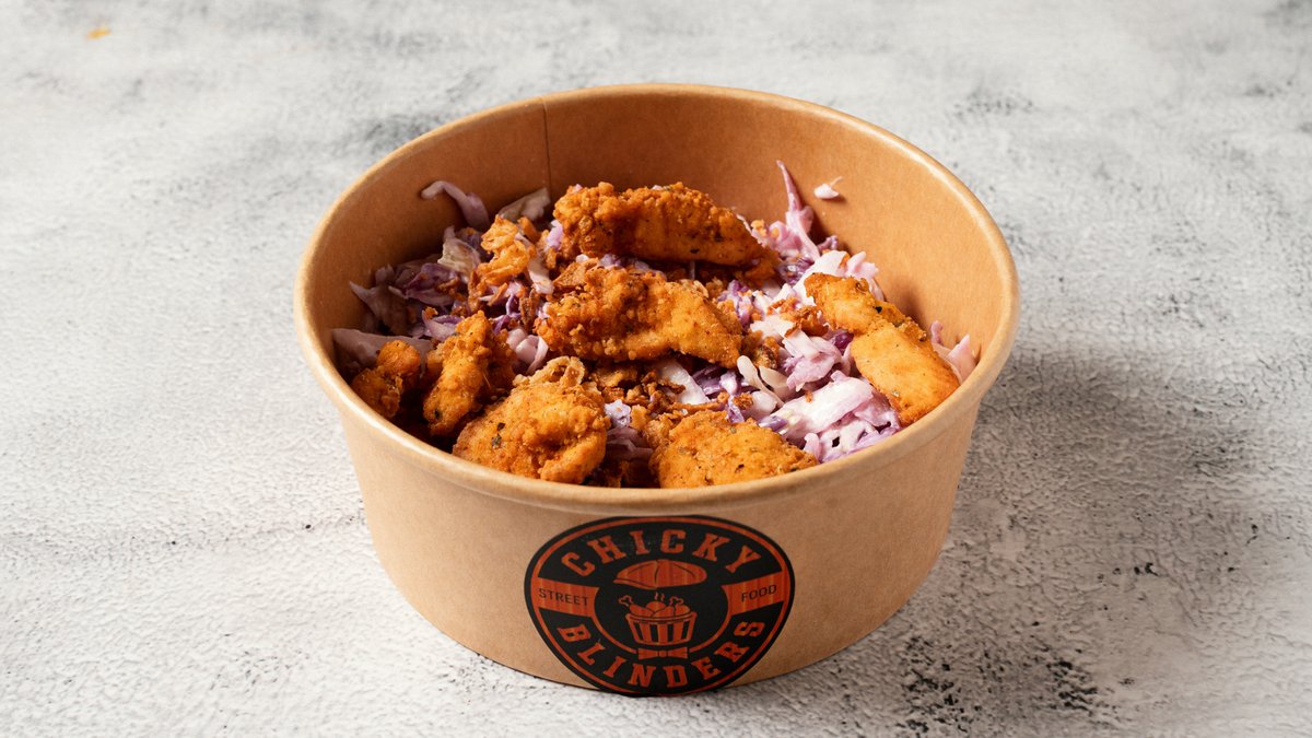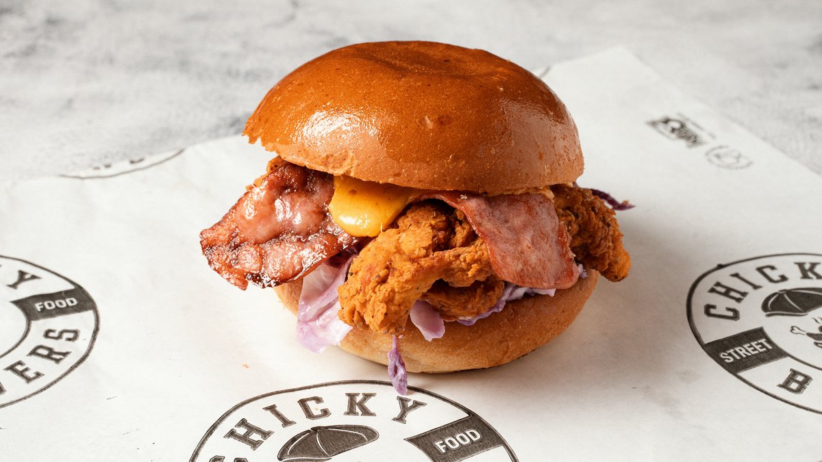 Με αφράτο ψωμάκι brioche, coleslaw, τραγανό φιλέτο κοτόπουλο ή strips, διπλό cheddar, διπλό bacon και sauce επιλογής
