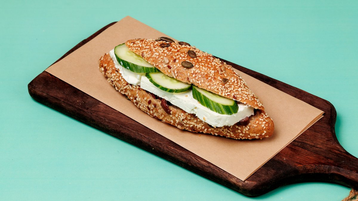 Με φέτα, πάστα πιπεριάς φλωρίνης, ελιά και αγγούρι