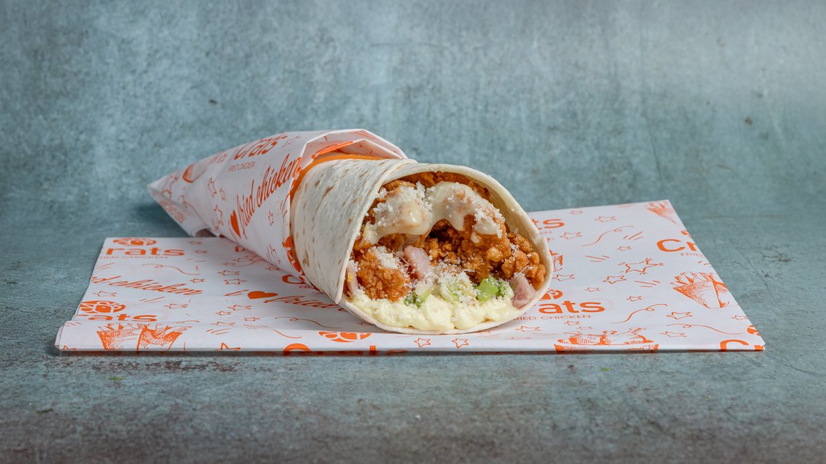 Wraps, iceberg ,two crunchy vhicken fillet ,τραγανό μπέικον, καλαμπόκι , parmezan και vinaigrette sauce , mustardmayo