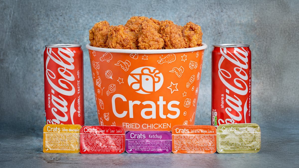 1 Crats Mix Bucket + 2 Αναψυκτικά 0.33 l + 5 Σωσάκια