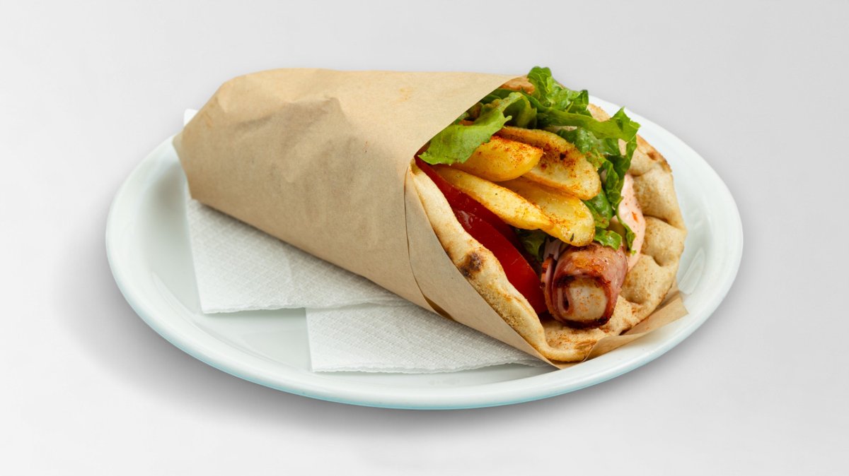 3 Φρεσκοψημένες πίτες με 190g. γύρο χοιρινό, τριμμένη gouda, iceberg, μαρούλι, κρεμμύδι, ντομάτα, sauce γιαουρτιού, ketchup και μουστάρδα. Συνοδεύεται από πατάτες τηγανητές και sauce γιαουρτιού