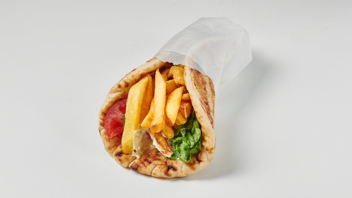 3 Φρεσκοψημένες πίτες με 190g. γύρο κοτόπουλο, τριμμένη gouda, iceberg, μαρούλι, κρεμμύδι, ντομάτα, μουσταρδομαγιονέζα, ketchup και μουστάρδα. Συνοδεύεται από πατάτες τηγανητές και sauce μουσταρδομαγιονέζα
