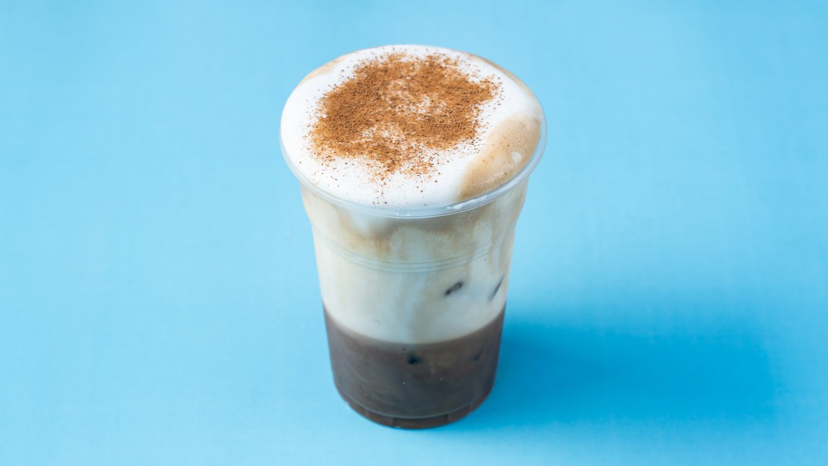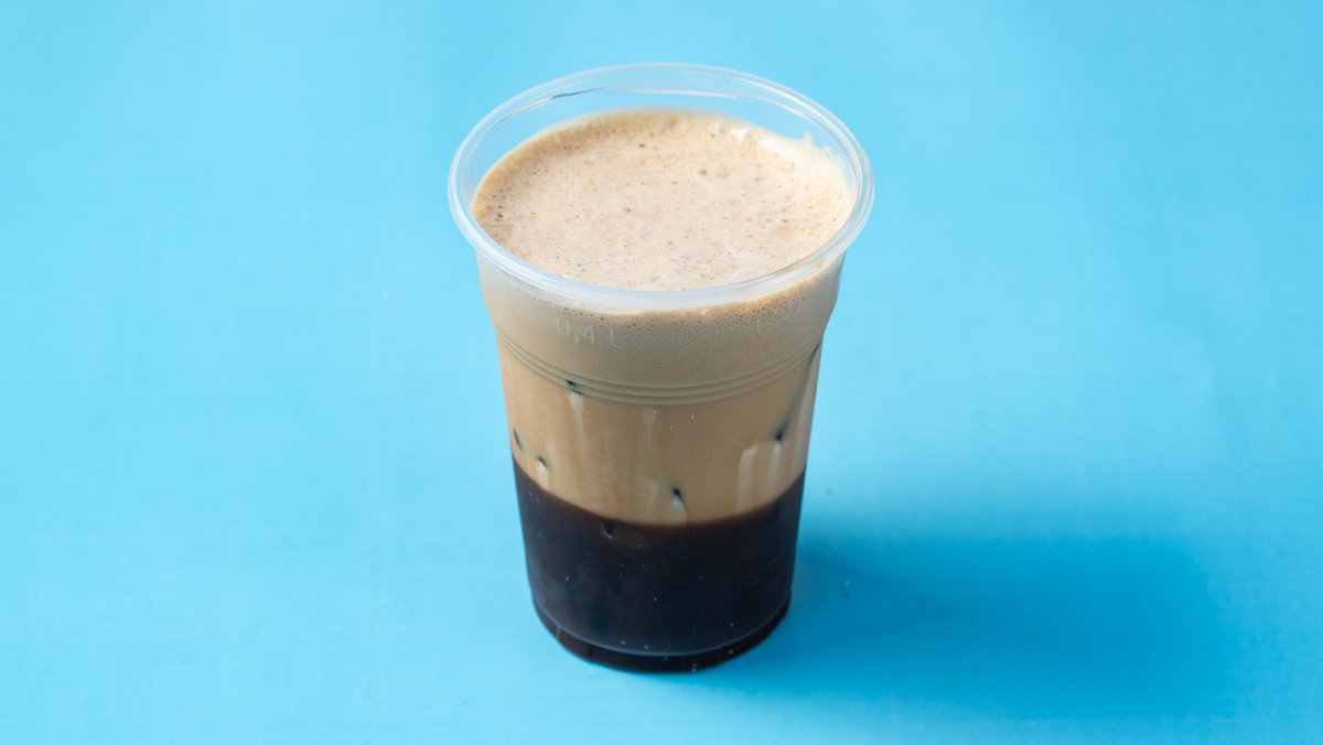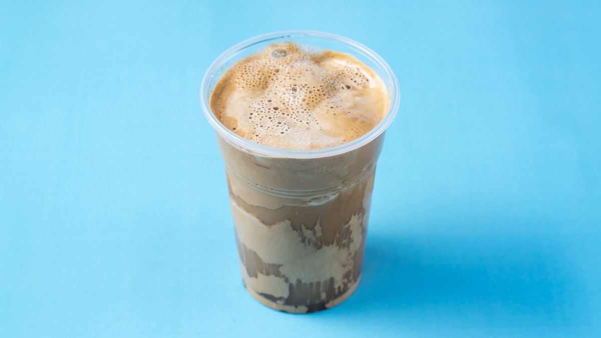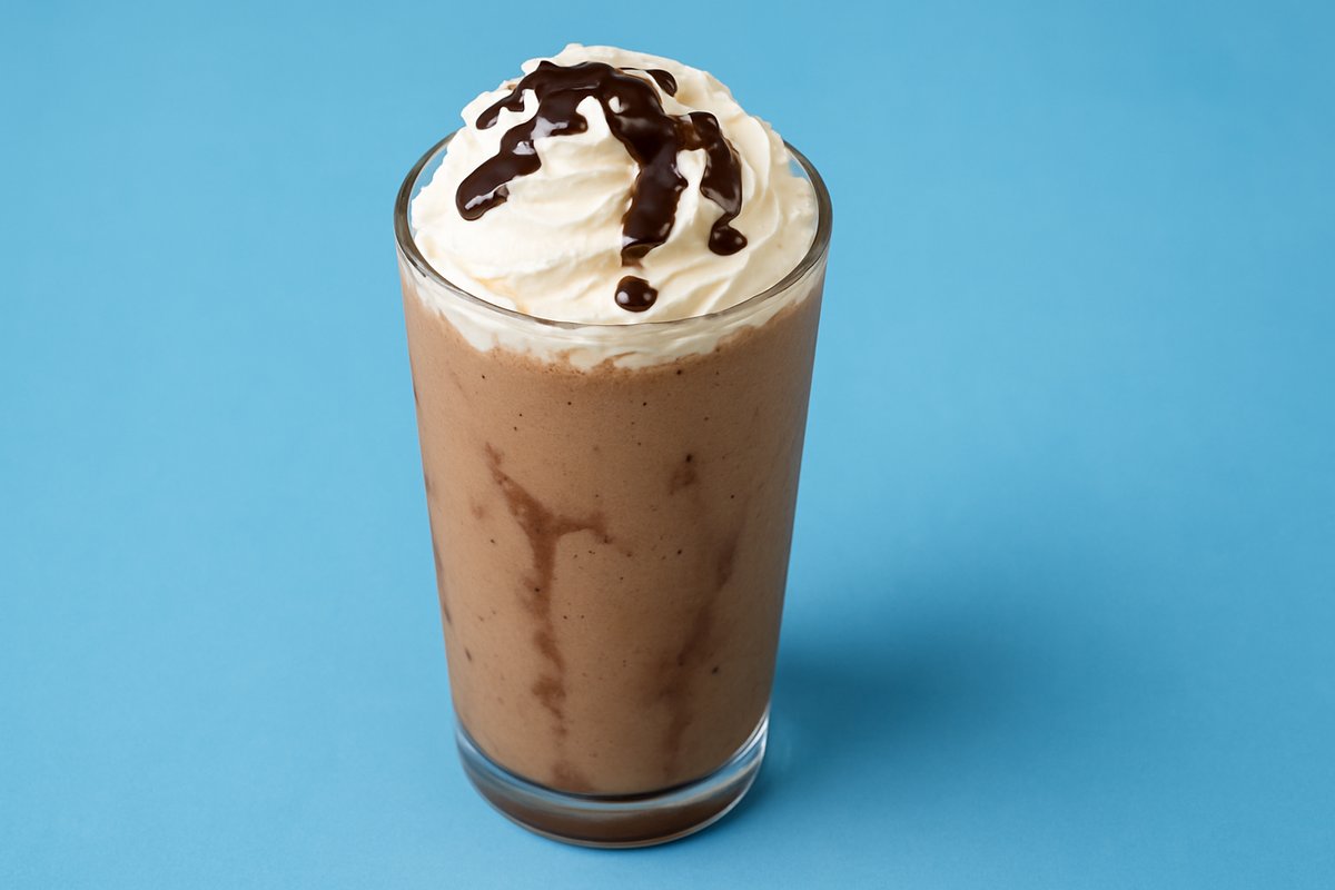 Milkshake σοκολάτα και ένα μεσαίο ντόνατς Μερέντα με επικάλυψη σοκολάτα